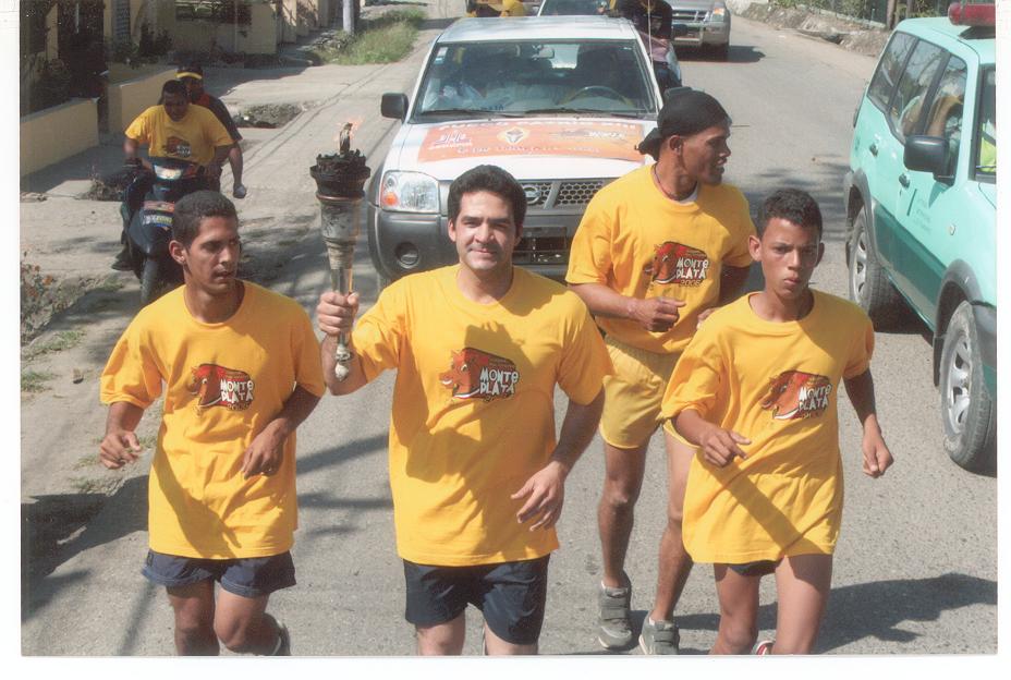 Carlos Reynaldo Cabrera, destacado ex boxeador mocano, portador de la antorcha, en el recorrido de la antorcha de los juegos nacionales Monte Plata, 15-02-2006.