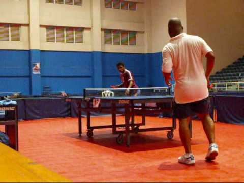 El Gran Maestro del Tenis de Mesa Odalis Gomez demostrando su excelente habilidad en este deporte